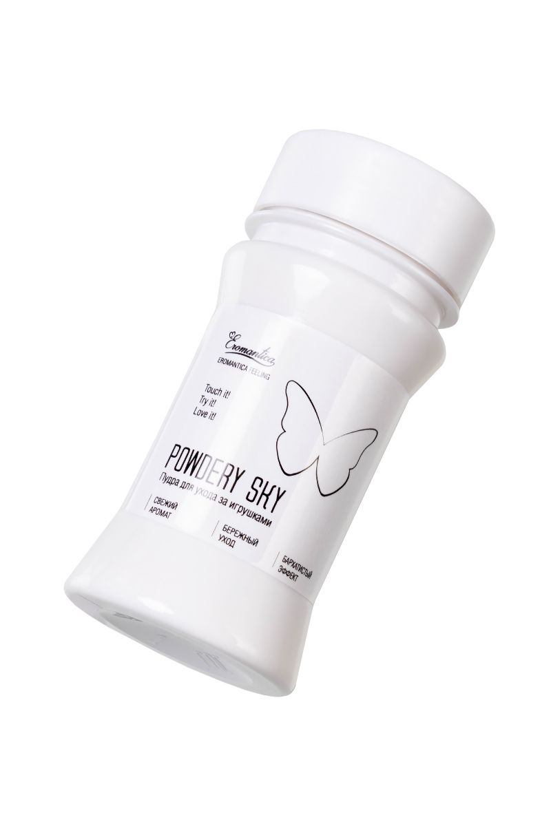 Невесомая пудра с ароматом мятной свежести для ухода за игрушками поможет надолго сохранить их первозданную эластичность и продлит срок использования! Легкое и равномерное распределение средства устранит эффект липкости поверхностей soft skin (киберкожа). Регулярное применение пудры обеспечит матовую бархатистость интимных аксессуаров и подарит комфортные ощущения, как при первом знакомстве! Ухаживайте с помощью Powdery Sky за любимыми девайсами после каждого применения и наслаждайтесь ее приятной заботой.